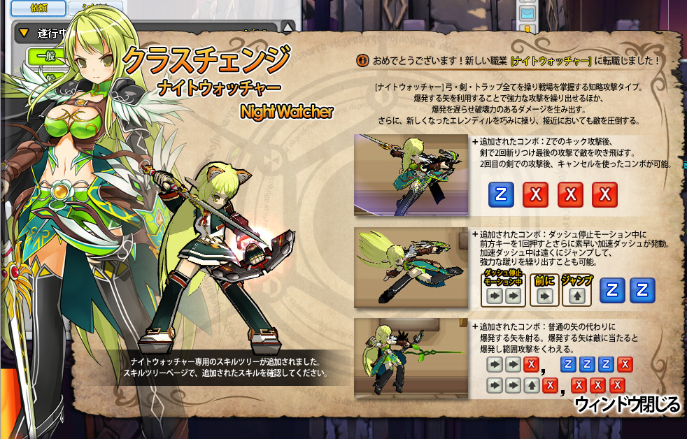 先日のエルソードのアップデートで、ようやくレナの新規三次職「ナイトウォッチャー」が