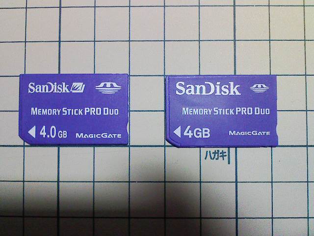 で、メモステ。最初4GB持ってたんですが、埋まったのでもう一枚4GBを買う事に。