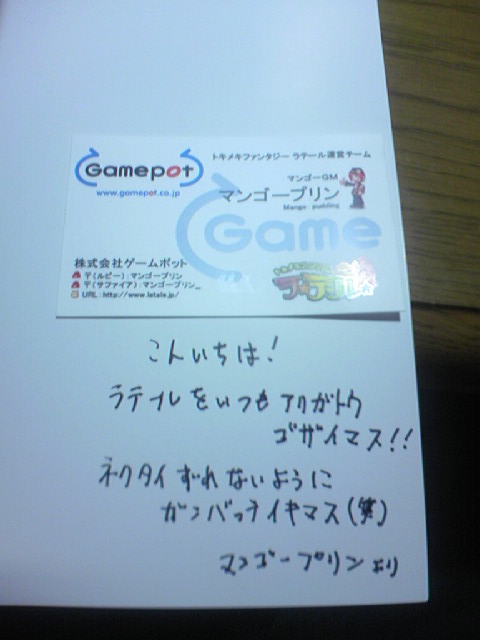 マンゴープリン氏名刺+サイン 大切な思い出。
