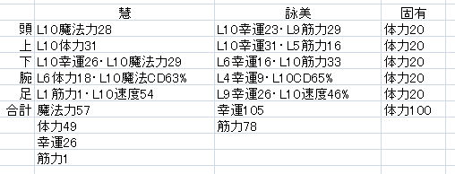 最終的な装備は以下のとおり。